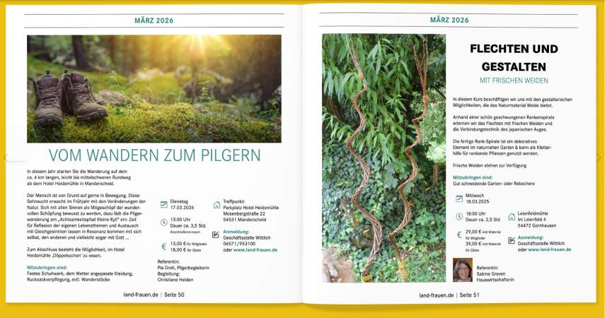 Ob Erzieherin oder Landwirtin, ob Floristin oder Ärztin, ob Hausfrau, Selbstständige oder Angestellte, ob jung oder alt - wir sind offen für alle Frauen in der Region. Zusammen arbeiten wir LandFrauen daran, das Leben auf dem Land immer etwas besser zu machen. Mit rund 1.200 Mitgliedern und mehr als 40 Ortsvertretungen ist der LandFrauen-Kreisverband Bernkastel-Wittlich eine starke Interessenvertretung und eine wichtige Institution für Bildungs- und Öffentlichkeitsarbeit im ländlichen Raum.